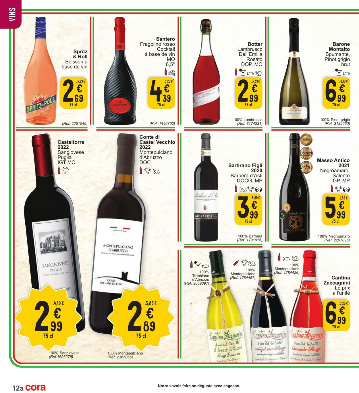 \ILE) Spritz & Roll Boisson à base de vin 40€ (Ref. 2251046) Santero Fragolino rosso Cocktail à base de vin MO 6,5° is 328€ 39 75e (Ref. 1446802) Botter Lambrusco Dell'Emilia Rosato DOP, MO 1Ys:s EXTS 100% Lambrusco (Ref. 8174231) Barone Montalto Spumante, Pinot grigio brut 100% Pinot grigio (Ref. 3139560) Casteltorre 2022 Sangiovese Puglia IGT MO io 99 75cl 100% Sangiovese K (Re.1696278) 12a COra MONTEPULCIANO D'ABRUZZ onte di Castel Vecchio 2022 Montepulciano d'Abruzzo DOC 15: ‘Coyrr LEO Er 385€ 83 75 cl 100% Montepulciano (Re. 2365066) E Masso Antico Sartirano Figli 2021 2020 Negroamaro, Barbera d'Asti Salento DOCG, MP IGP, MP isve iÿe pendu sue 159€ 9 75e 75e 100% Barbera % Negroamaro (Ref. 1791015) ur 2297096) i E e 1YS 2$s 0% : 100% Montepuisans ne Montepulciano (Ref. 1784426) Prbere (Ref 1784457) Cantina (Ref. 3059397) Zaccagnini Le prix à l'unité À 829€ 15e a Lu dar n F6 ist Notre savoir-faire se déguste avec sagesse.