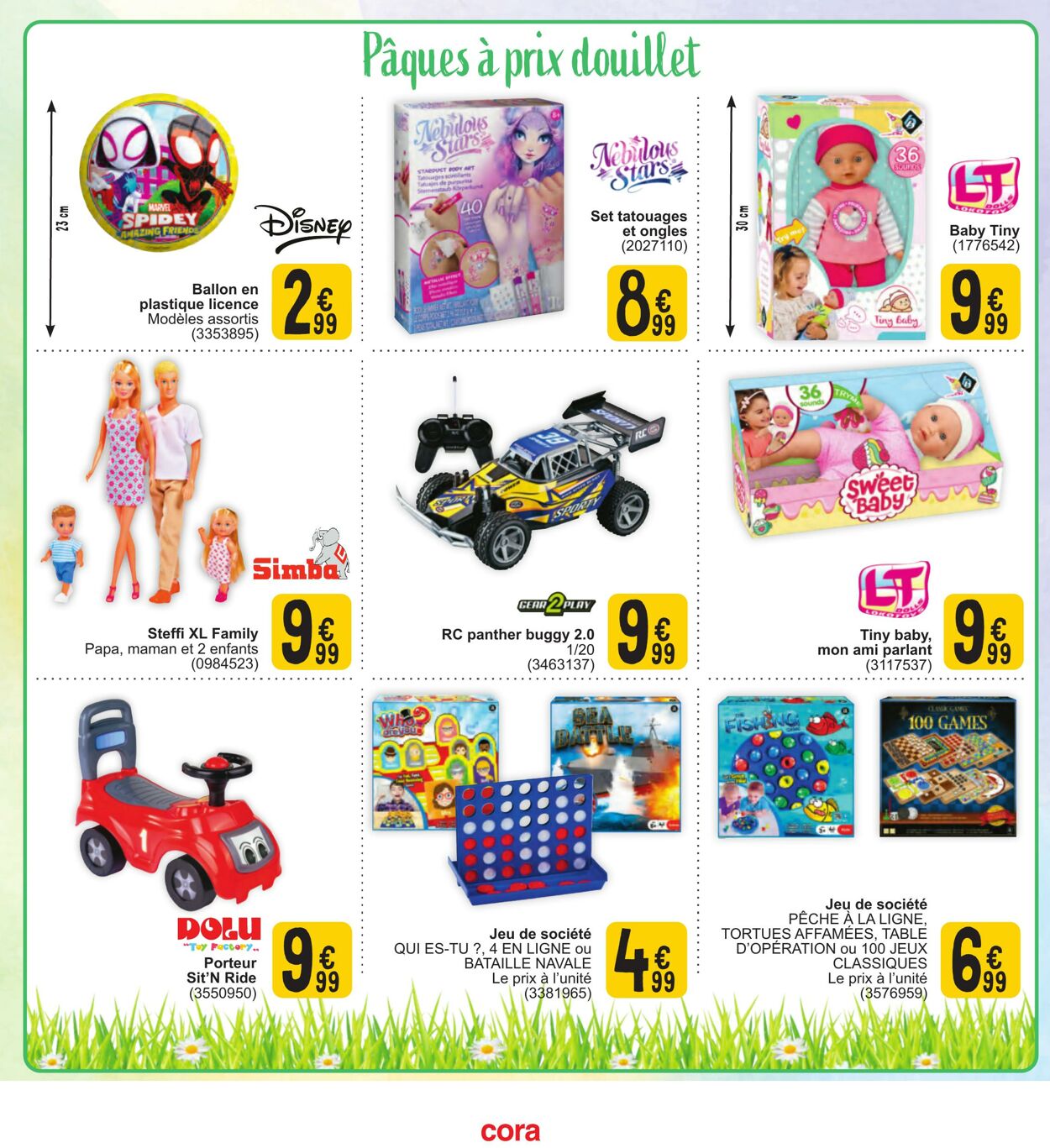 Pâques à à prx douullet Log è as sun", S' mi j DR A TUE 23cm Set tatouages : et ongles : (2027110) : Baby Tiny (1776542) F Der Ballon en plastique licence € Modèles assortis 99 (3353895) Steffi XL Family € Papa, maman et 2 enfants 99 (0984523) Tiny baby, € mon ami parlant 99 (3117537) Jeu de société : : ÊCHE À LA LIGNE, BOEU : Jeu de société : TORTUES AFFAMÉES, TABLE Te Factory. : QUIES-TU ?, 4 EN LIGNE ou = D'OPÉRATION où 100 JEUX Porteur € : BATAILLE NAVALE €“ : CLASSIQUES € Sit'N Ride 99 Le prix à l'unité 99. ‘ Le prix à l'unité 99 (8550950) (3381965) (3576959) cora